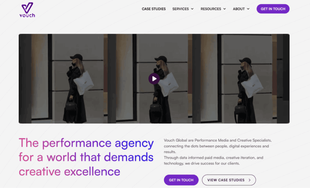 2. Vouch Global: A creative-first performance agency known for its deep audience insights and full-funnel execution. They specialize in in-house creative production and continuous testing to scale campaigns that deliver exceptional ROAS.