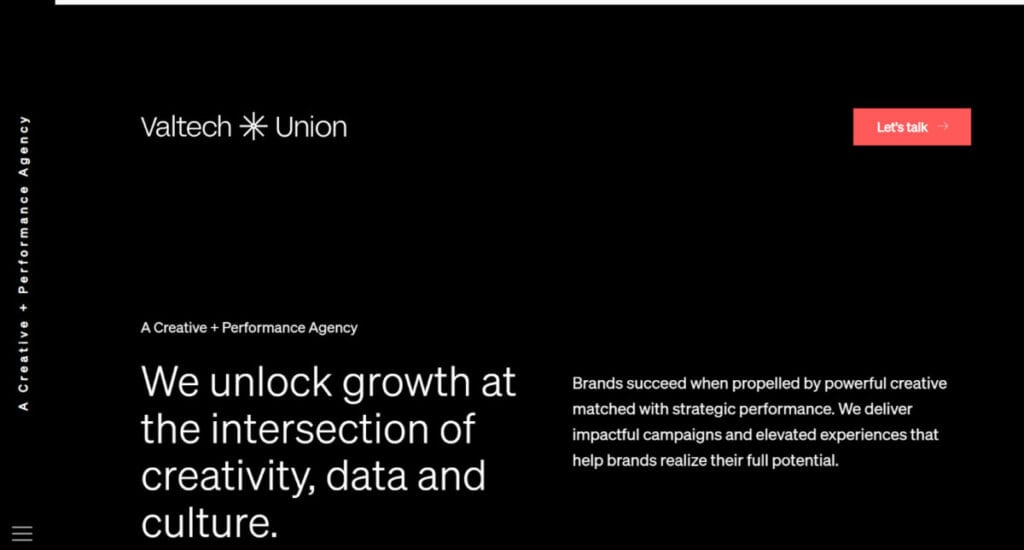 3. Valtech + Union: A hybrid agency combining storytelling with analytical precision. They create emotionally resonant, data-informed campaigns that connect with audiences across multiple touchpoints through strategy, media, and creative integration.
