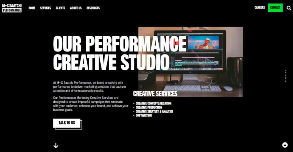M+C Saatchi Performance connects creative ambition with disciplined execution, crafting ads where data informs every format, message, and visual. Their global footprint spans London, New York, LA, Singapore, and Jakarta, giving them the scale to operate across markets while staying culturally precise. Their Performance Creative Studio runs campaigns end to end, handling concepting, multivariate testing, localization, scaling, and adaptation across channels.