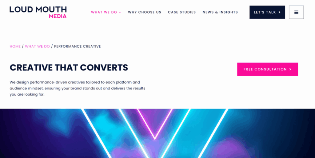 Loud Mouth Media builds creative assets designed with one clear goal: conversion. Their work spans platform-specific visuals, video, landing pages, and continuous A/B testing, all guided by real-time analytics. Recognized as a Google Premier Partner and Meta Business Partner, the agency has also earned titles like PPC Agency of the Year, a testament to both its creative skill and technical depth.