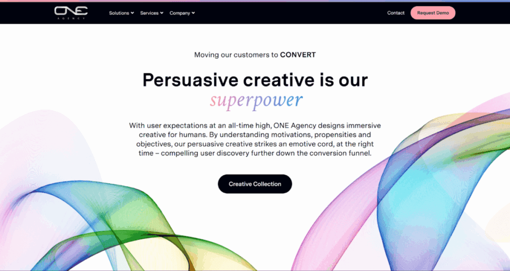 ONE Agency treats creative as a conversion engine, not a decoration. Their Conversion-Centered Design (CCD) framework focuses on clarity, structure, trust, and frictionless experience: every visual element is built to move users toward action. Their Creative Collection spans digital ads, videos, landing pages, social graphics, UI/UX, retargeting flows, email and SMS, and even print and prototype design, giving clients full creative continuity across touchpoints.