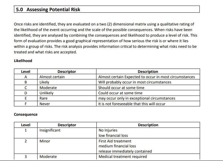 What are the five levels of risk?