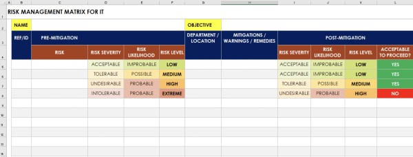 - Data Organization: Excel enables structured tracking of risks, including probability, impact, and mitigation strategies, all in one place.