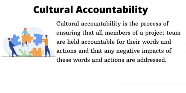 Accountability is not solely about individual ownership of a task. It is about the shared responsibility of an entire group or organization for the actions and decisions of its members. Cultural accountability, specifically, is the process of ensuring that all members of a project team are held responsible for their words and actions, and that any negative impacts are acknowledged and addressed.