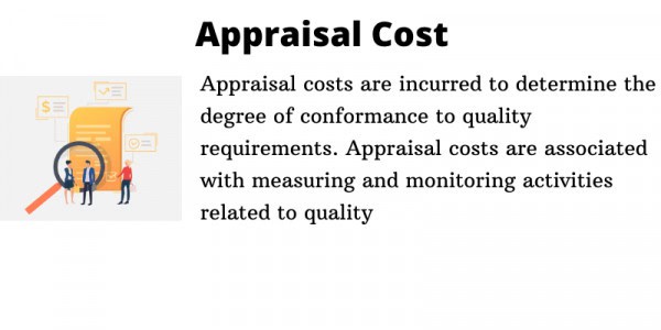 Appraisal costs are the costs associated with assessing the quality of the project deliverables. They can include things like quality assurance tests, project audits, and independent reviews. appraisal costs can quickly add up and eat into your project budget.