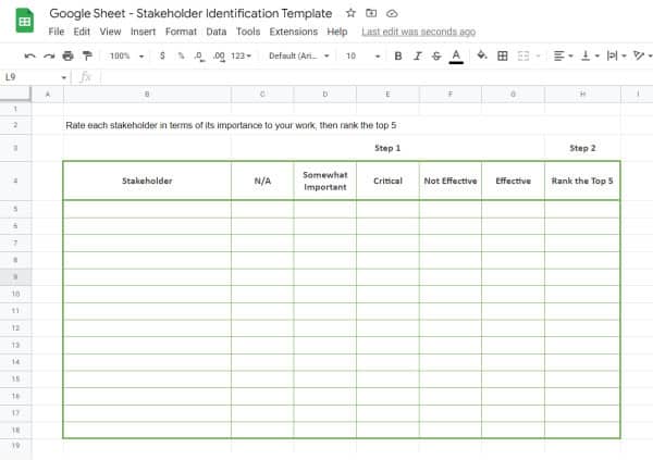 Stakeholder Identification Template Google Sheets