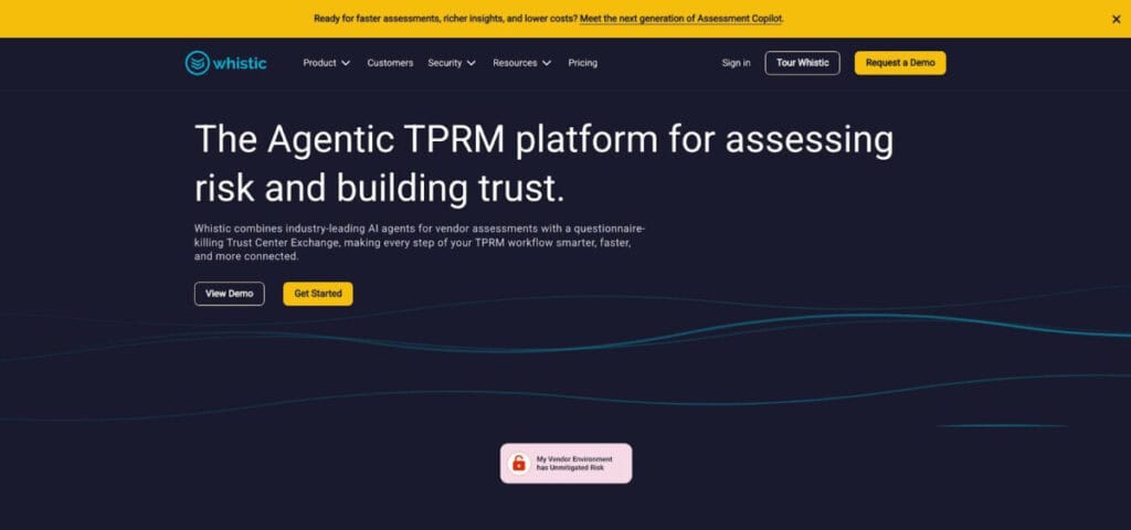The next two tools take different routes to the same goal. Panorays leans into blended scanning plus assessments, then recalculates risk with its Risk DNA model. Whistic reduces review time by replacing one-off spreadsheets with shared vendor profiles and standardized security packets.