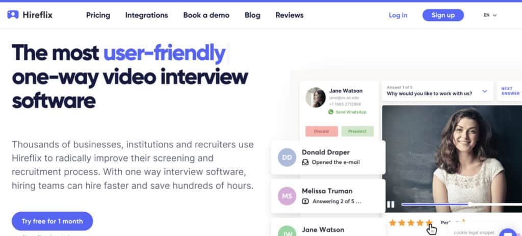 This pricing flexibility makes Hireflix a popular choice among businesses that are looking for a high-quality solution that doesn’t stretch their budget. The option to choose between pre-recorded interviews and live interviews allows companies to customize their usage based on their specific hiring needs.