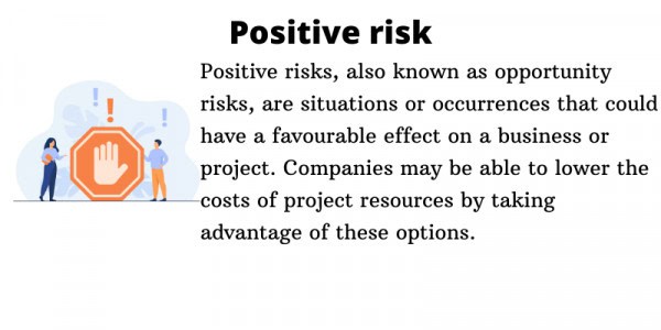 Positive risks are uncertain events or conditions that, if they occur, would improve the project in some meaningful way. They represent upside potential, chances to make the project more efficient, more effective, or more successful than originally planned. Positive risks should be actively encouraged and pursued wherever possible.