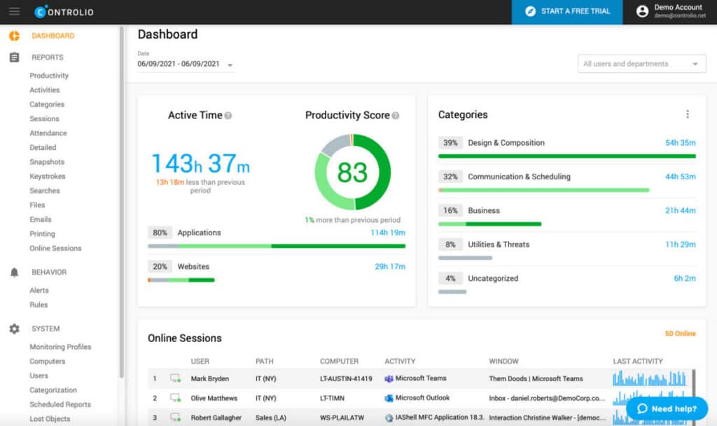 No, it’s not about distrust. Many businesses use employee monitoring software to boost productivity and streamline their operations. It helps managers spot workflow issues, identify bottlenecks, and better understand how their teams work. Ultimately, it allows organizations to offer more targeted support, helping employees perform at their very best.