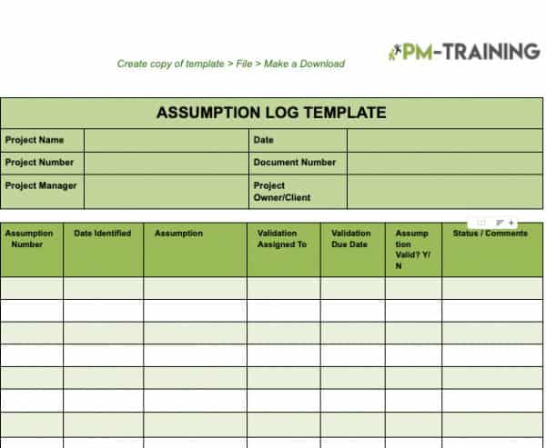 Download a free, pre-formatted assumption log template from here to see this structure in practice.
