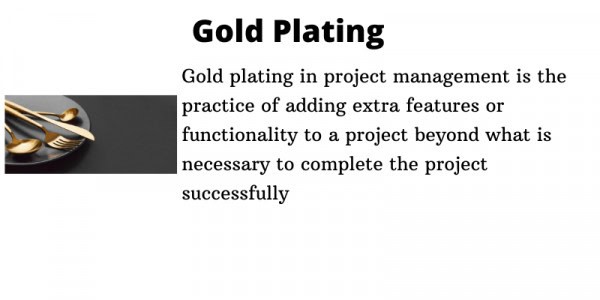 Gold plating refers to the act of adding features, enhancements, or functionality that were not part of the original project scope or agreed-upon requirements. These additions are typically made by the project team without formal approval, often with the intention of improving the final product or exceeding expectations.