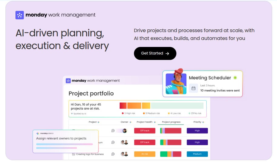 Monday.comโs standout feature is its agentic AI assistants that actively execute work, not just analyze it. These AI agents can qualify leads, triage service tickets, flag project risks, plan sprints, and generate reports around the clock. Unlike passive AI tools, mondayโs assistants are embedded directly into workflows, enabling teams to describe a job once and let AI handle repetitive execution continuously.