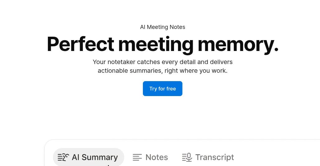 - AI Notetaker (Starting at $12/month): Includes up to 60 hours of meeting recording, smart summaries, searchable transcripts, and action items.