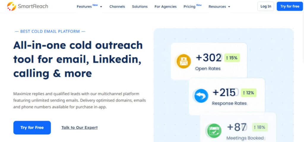 SmartReach.io is built for sales teams that want high email deliverability and outreach at scale. The platform focuses on keeping emails out of spam with tools like automated warm-up, inbox rotation, and unlimited free email validation. It also supports unlimited sending of emails per campaign, drip sequences, and even multichannel outreach through email, LinkedIn, and calls.